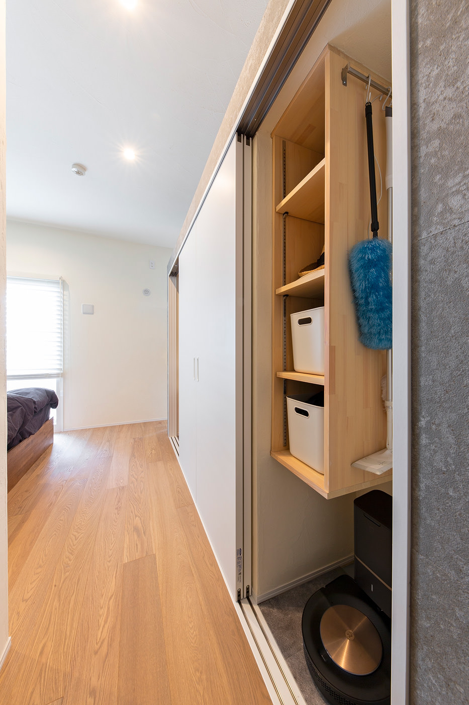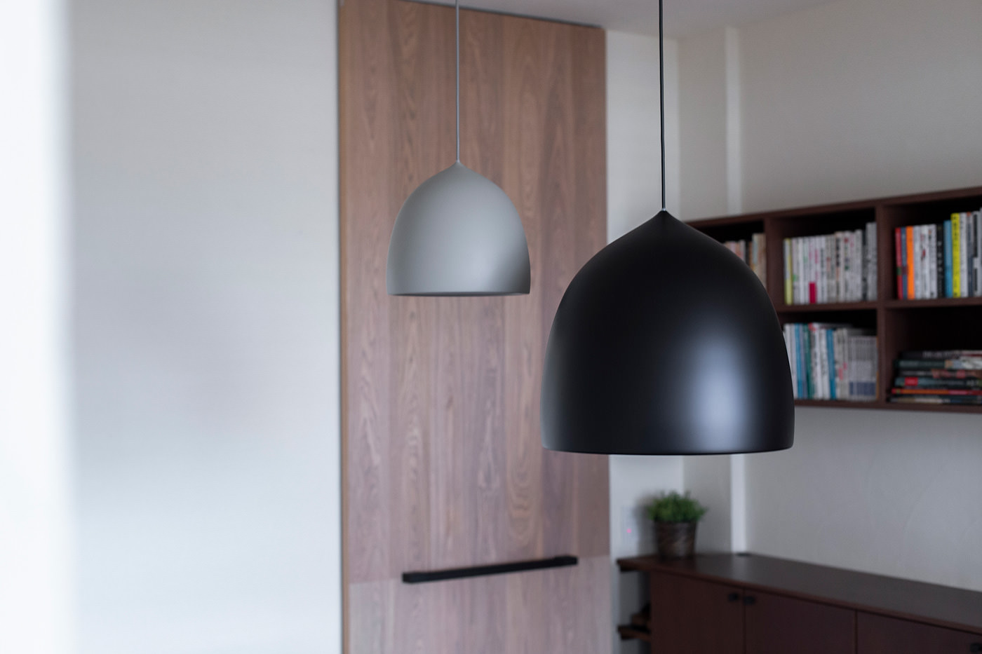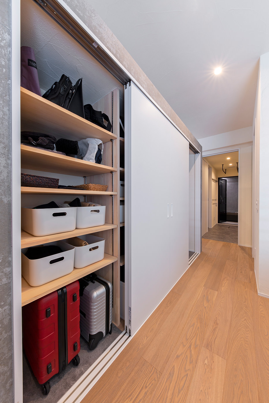 中の壁面にも同じ壁化粧板を貼っており、家電製品もデザインを吟味しているので、引き戸を開けていても洗練された印象