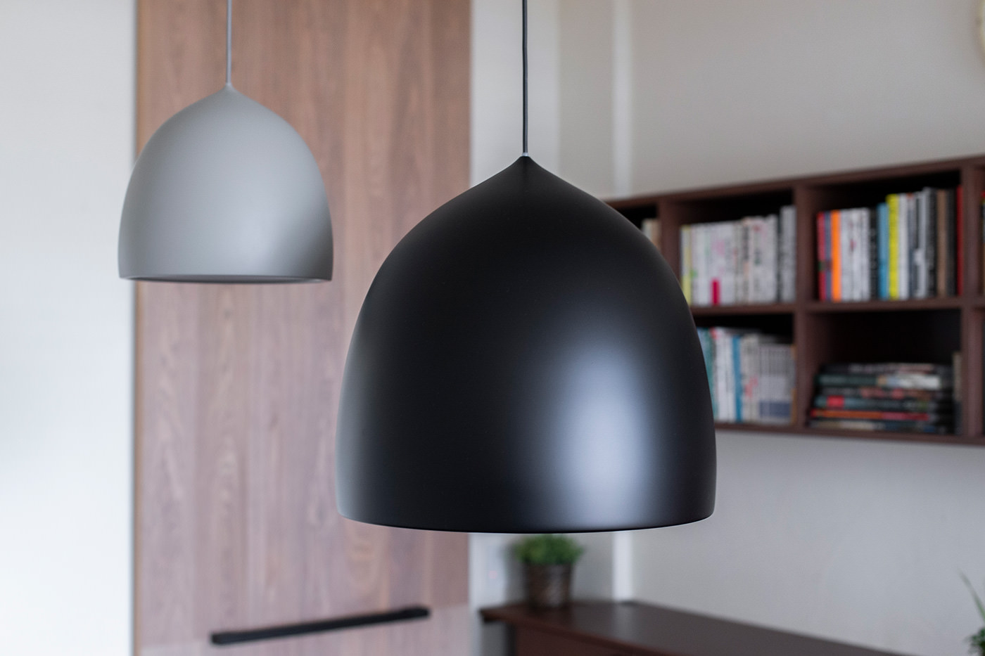 ゆとりのできたスペースをダイニングにし、リモートワークもここで。壁には本棚と収納カウンターを造り付けた