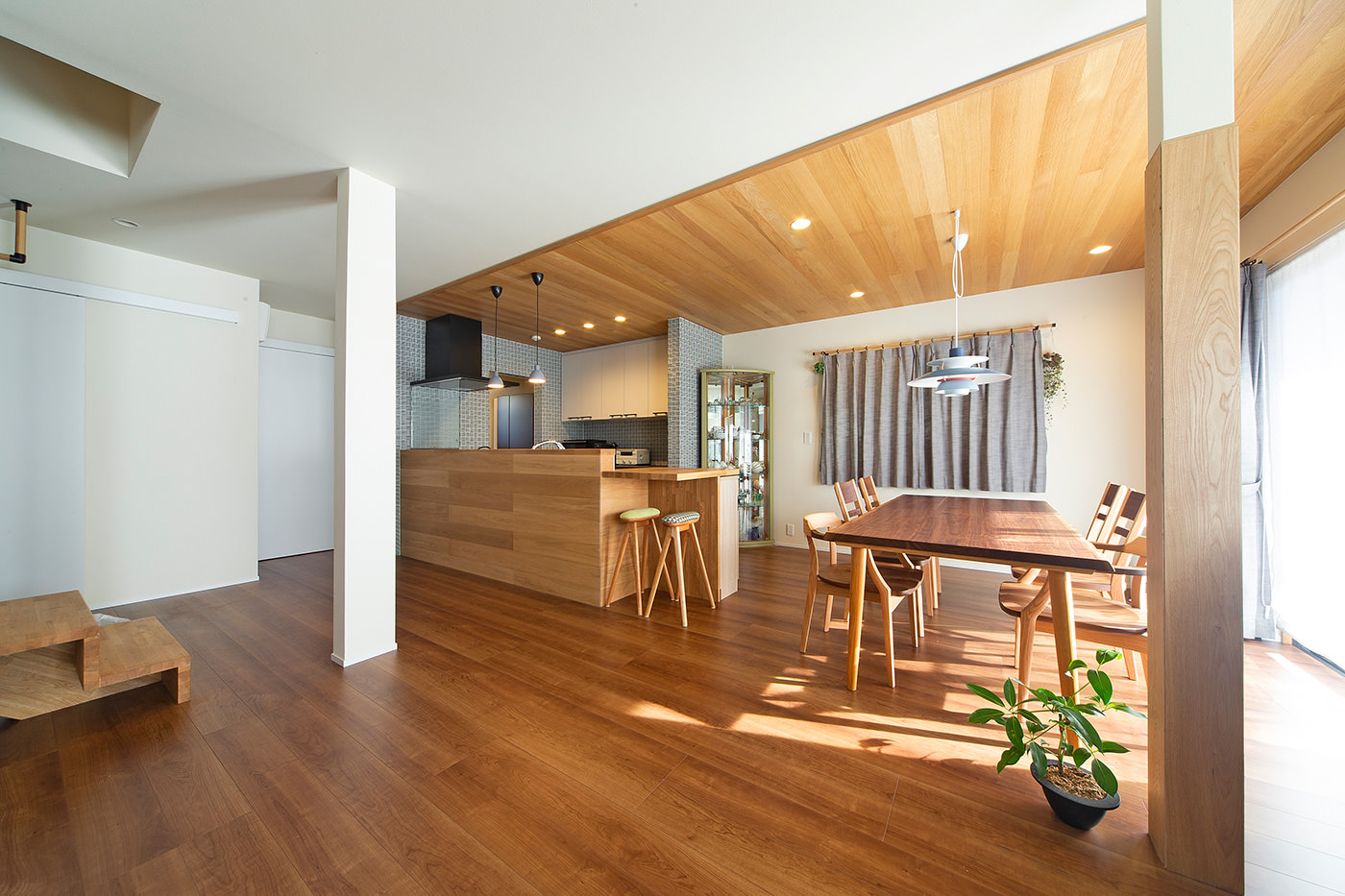 DK部分の天井は板張りにし、床には床暖房を設置。窓は断熱性の高い複層ガラスサッシに変えた