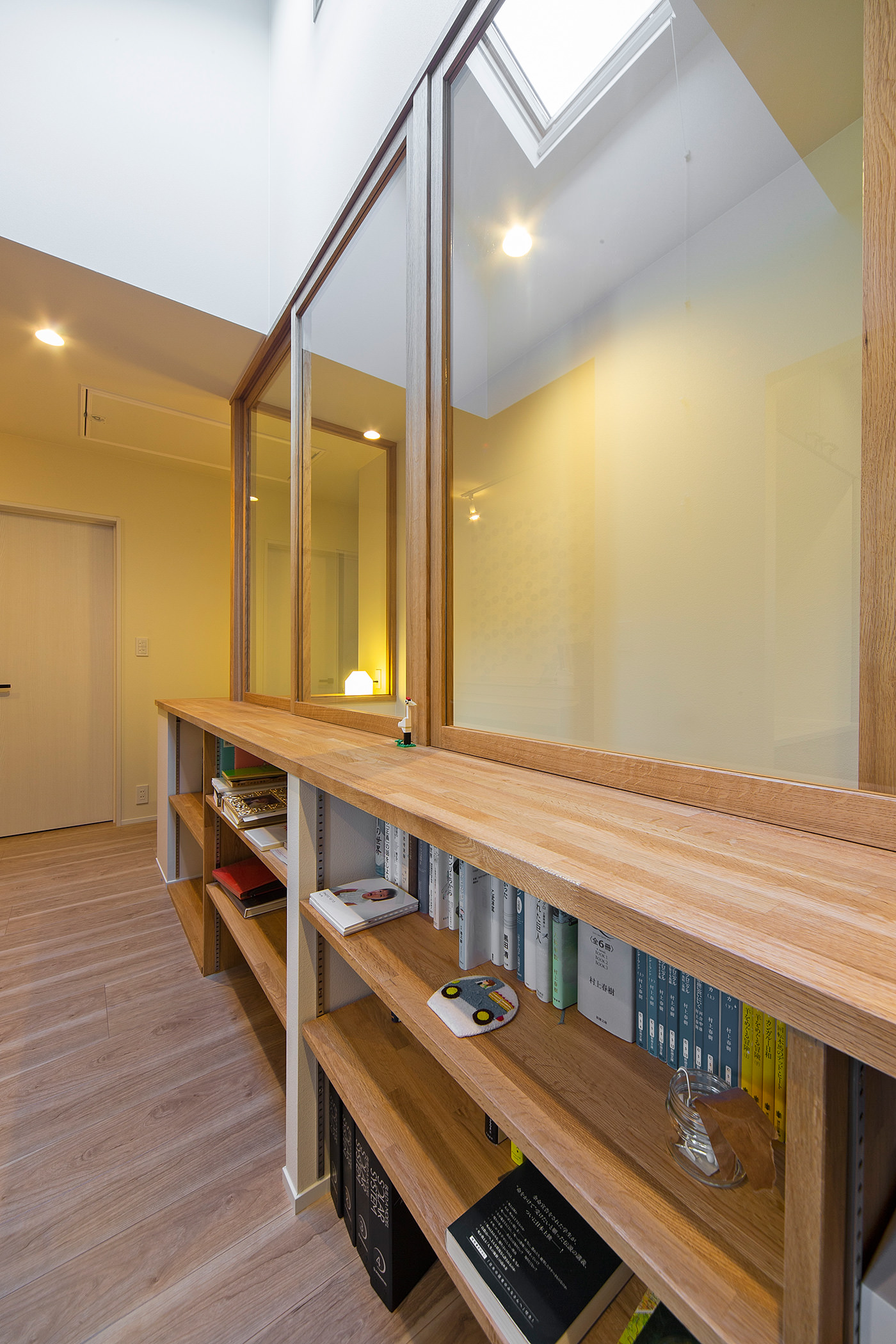 2階の廊下に本棚を造り付け、家族のライブラリーに。
