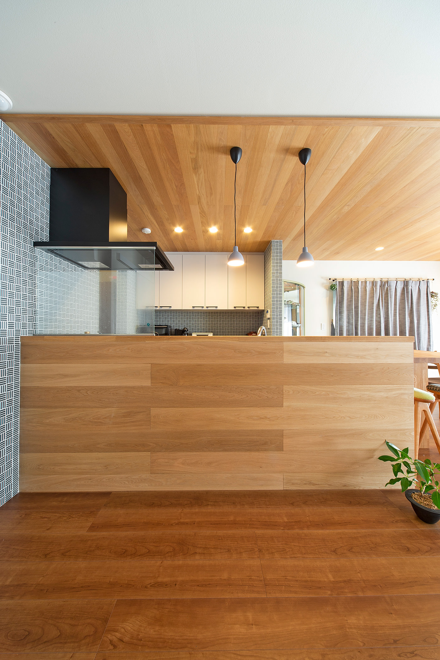 「キッチンを司令塔に」との妻の希望に応え、向きを変えてオープンなキッチンに。