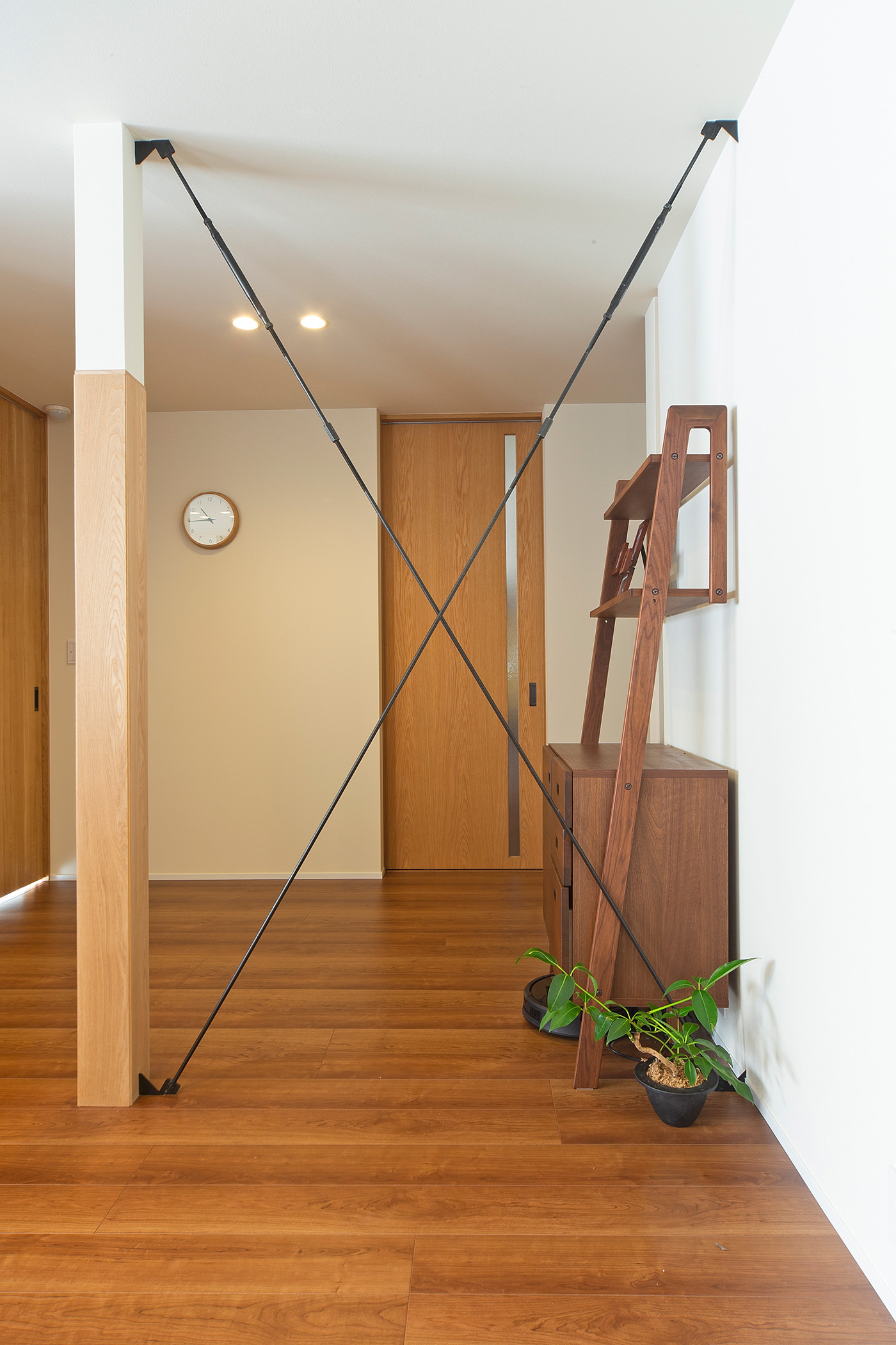 廊下をなくし、壁を撤去して鉄骨ブレースで補強したので、LDKの気配が感じられ、移動もスムーズにできる。